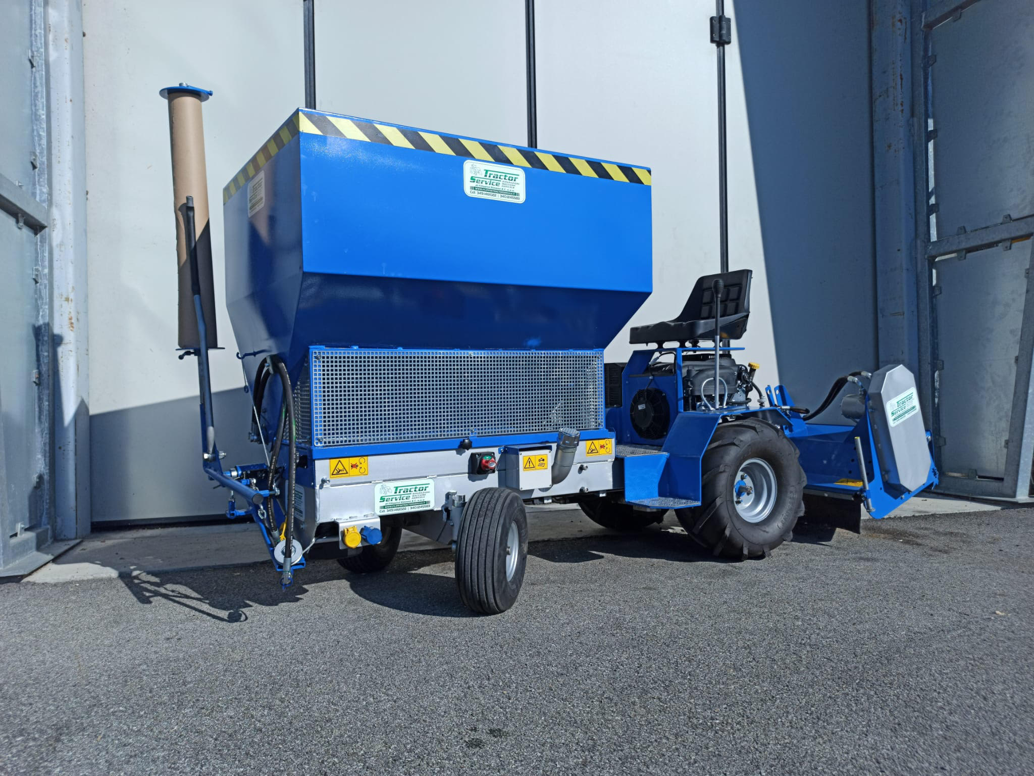 E' possibile avere, inoltre, all'anteriore anche una botte di capacità di 100 litri dotata di pompa elettrica per la disinfezione e la distribuzione di enzimi, componente fondamentale per la produttività dei cicli di allevamento avicolo dove la salute e il benessere animale sono fondamentali. A richiesta , come se non bastasse, è possibile avere anche un cassone ribaltabile per qualsiasi tipo di materiale.